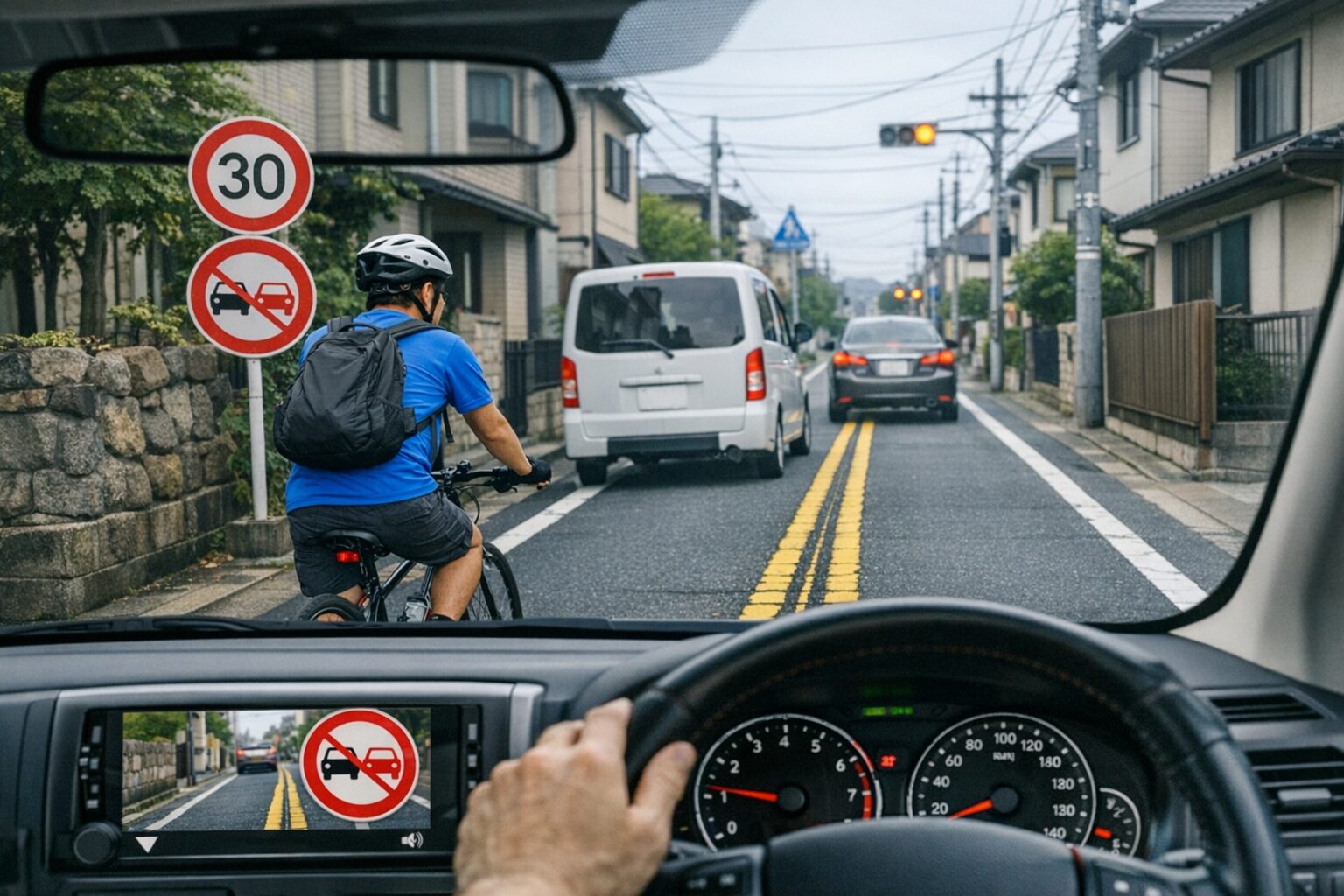 距離が取れない道では、20〜30km/hまで落とすだけで安全性が大きく変わる。