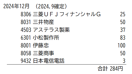 ミニ株始めて半年。始めてもらった配当金は284円でした。